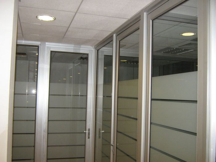 Tabiquería de Aluminio y Vidrio Tabiques separadores de ambientes para oficinas. Permiten gran luminosidad en los espacios y el grado de privacidad que se requiera. Gran variedad de diseños y cristales.